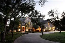 Enchanting home & ranch on 9.54 acres of native forests & rolling pastures! Open concept w cathedral ceilings & exposed beams! Chef's Island Kitchen & wlk-in-pantry! Luxe Owners Retreat downstrs! 3 BRs-Baths up + flex Guest Suite-Bonus Space! Cov'd patio w WBFP, bltin grill overlooks picturesque landscape! 4-8 stall barn,AC tack room, auto waterers, hay storage,2 outdoor arenas & pipe no-climb fencing! 5 car garage! Desirable schools! AG exempt!