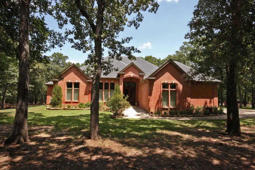 Set on 5.6 acres, 741 Oak View Drive in Eagles Landing offers an appealing custom home and spacious workshop nestled in a private wooded environment in a lakeside acreage neighborhood between Frisco and Denton.