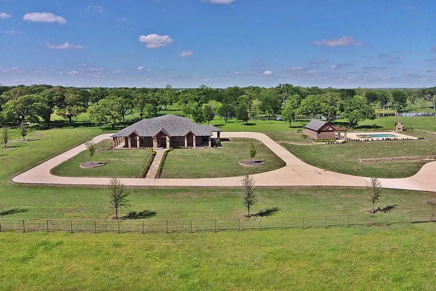 Set on 25 acres between Aubrey and Pilot Point, this elite property features a newer brick and stone home with a huge garage, an inviting outdoor living space with an inground pool, stone fireplace and pool house, pastures fenced in pipe and cable, stock pond and a gated stone entrance. Although as complete as the property already is, the layout of the improvements have been designed around adding another home and/or a horse barn.