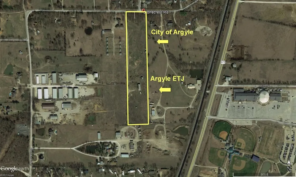 Great acreage in Argyle. Front property is located int he city limits and back acreage in the ETJ.