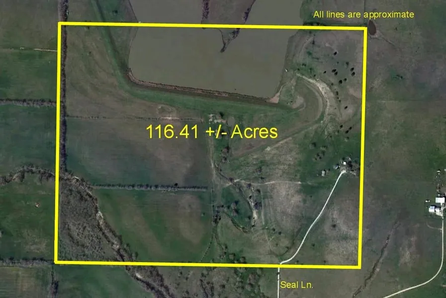 SPORTSMAN'S PARADISE! This unique 116+/- acre property features part of a 34 acre soil conservation lake with fishing dock, tons of deer and other wildlife, 2 hay pastures, elevated building site, remodeled 1947 home, barn with concrete floor, 125 X 225 arena, pavilion with electricity, creek, mature trees, and much more. Buyer to verify all information.