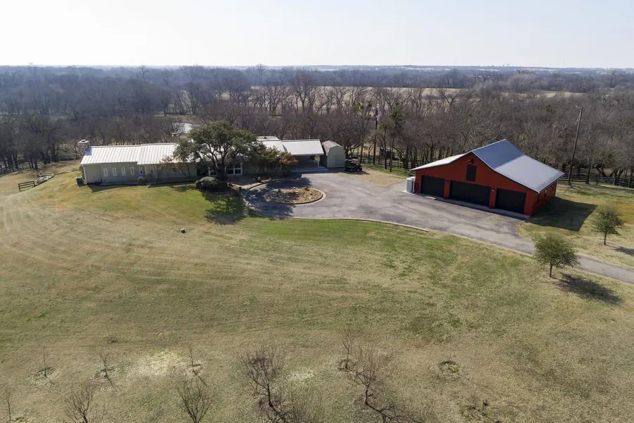 Custom hilltop ranch home overlooking Clear Creek with a country feel yet close to the city. This 3-bedroom, 3 bath house sitting on 23 acres is a showstopper and move in ready! In addition, there is a detached 4 car garage with a cedar storeroom and mezzanine studio upstairs. Inside this beautifully updated home you will find hardwood and stone flooring throughout, 2 fireplaces, a storm shelter/saferoom and amazing views of the Clear Creek valley. The screened in porch has a wood burning stove so you can enjoy the outdoors even when it is cold. Entertain outside on the large, covered patio with outdoor kitchen which includes a full bathroom, wood burning pizza oven, big green egg, refrigerator, grill and fire pit, all overlooking an amazing saltwater pool and spa built into the hillside.