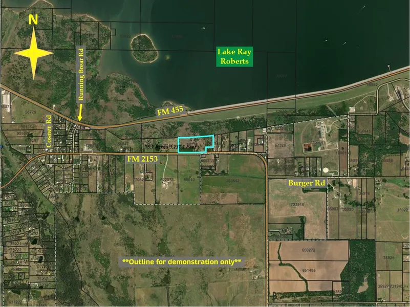 16.18 +/- Acres with No Restrictions Outside City Limits, In The City of Denton ETJ * Co-Serv for Electric * Green Springs Water Supply * Great Property for Building a Home or Developing * Sanger Schools * Aubrey Address* Located across the road (FM 455) from the Lake Ray Roberts Dam. Deer have been seen on the property.
