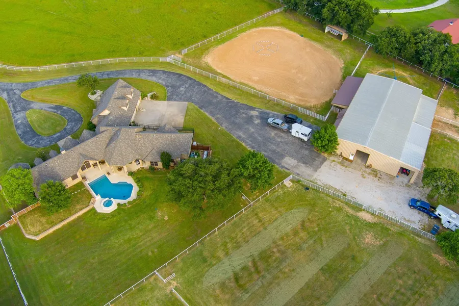 Discover a truly unique opportunity to own a stunning private estate nestled in the heart of equine countrywhere rural serenity meets city convenience. Located just minutes from modern amenities, this exceptional 14+ acre gated property offers the perfect blend of seclusion, functionality, and luxury. The custom 4,487 sq ft home features a thoughtful split-bedroom floor plan, including a private mother-in-law suite, and is equipped with a whole-house generator for peace of mind. From the moment you arrive, you'll be captivated by the breathtaking pond, expansive hay field (Ag exempt), and rich sandy loam soil ideal for equestrian pursuits. Equestrians will appreciate the impressive 12-stall barn complete with an efficiency apartment, tack room, wash stall, and a 4-horse walkereverything needed for a premium horse facility. After a day spent outdoors, unwind by the sparkling pool set against the tranquil backdrop of this scenic estate. Whether you're seeking a family retreat, an equestrian haven, or a unique combination of both, this property offers the rare chance to enjoy countryside living with easy access to the metroplex. Privacy, functionality, and natural beauty converge in this once-in-a-lifetime offering.