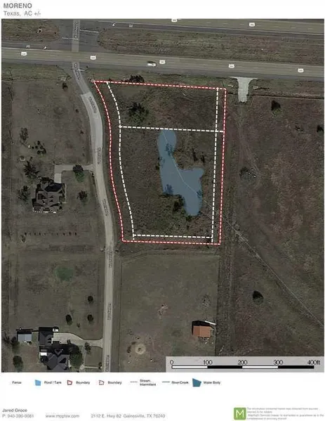 Residential lot for sale on US 380 in Krum ISD with a pond.