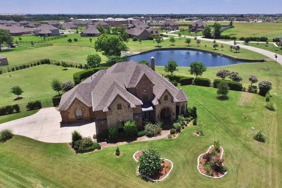 Set on a premium 1-acre lot overlooking a scenic neighborhood lake and green space within a nice gated community, 104 Las Colinas Trail in Cross Roads offers 4 bedrooms, a media room, inground pool and a 4-car garage.