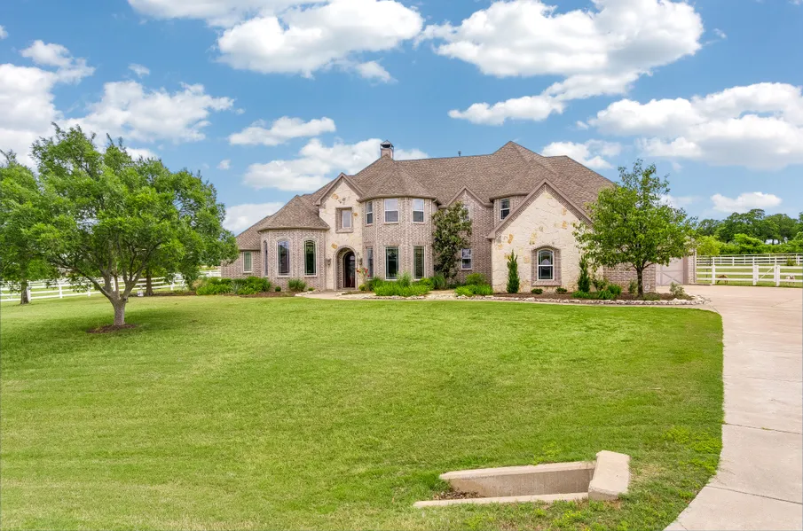 'SADDLEBROOK ESTS*MAJESTIC 2.55 AC GRAND EST'...4,668+ SF*2-STORY*5 BDRMS*4 FULL BATHS*1 HALF BATH*4-CAR GARAGE*Exquisite Entry*Formal Dining*Morning Rm*Well-Equip Kit w-Thermador Appliances--5-Burn Range w-Vent-a-hood,Double Oven,MW, Maple Cabinets,TX-SIZE Pantry*Handsome Study-Library w-Blt-Ins Galore*Great Rm w-FP*Sumptuous Master Wing w-FP,Sitting Area,Shower & Flrs w-Travertine Tile,Accented Copper*Bar w-Wine Rack-Refrig,Butler's Pantry*Theatre Rm(All Media Equip Stays)*Rich Hardwood Flrs,Crown Moulding*Upstairs w-Juliette & Exterior Balconies Overlook Amazing Landscaped Backyard,Pergola,Outside Entertainment Area w-Kitchen,FP*Saltwater Pool w-Waterfall,Spa*Well for Sprinklers*Horses Allowed*Argyle ISD*