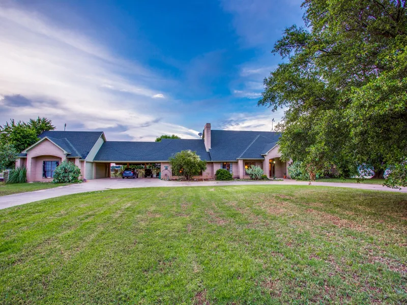 This custom home is gated and features interesting architecture with two master bedroom suites. The main master bedroom suite is multi-leveled with a wood-burning fireplace and separate tub and shower, with tons of counter space, a huge walk-in closet, and a cedar closet. The second master suite is all one level with a large bedroom and a huge bathroom. Two separate living areas provide privacy and the ability for different family members to watch two different TV shows. One of the bedrooms has built-ins and is currently utilized as an office. There is also a separate and private guest quarter above the garage with its' own full bathroom and kitchenette. The large circular driveway provides plenty of guest parking for entertaining or holidays. The home resides on a full acre lot which provides a large fenced back yard for pets. The gourmet kitchen features a built-in Subzero refrigerator, built-in microwave, and tons of beautiful wood cabinets. The kitchen flows effortlessly to the open dining room where you will enjoy one of the three wood-burning fireplaces. Much of the home boasts great natural light from the numerous large windows and tall and lofted ceilings. There is a large inner patio that overlooks the rolling hills to the north which is beautiful as the sun begins to set in the evening. ALSO AVAILABLE is a contiguous 41-acre equestrian ranch that can be purchased with the home, while available.