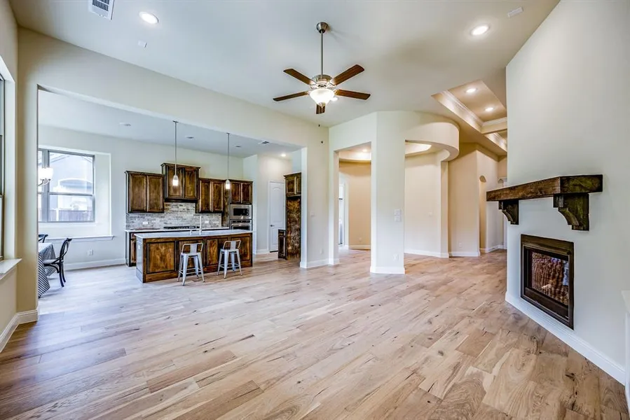 Beautiful 4 bedroom home with an open floor plan! When entering this home it gives an inviting feel with hardwood floors, vaulted ceilings, and decorative lighting. The open floor plan is perfect for gatherings and entertaining. The family room has a fireplace to gather around on those cold winter nights to relax and unwind. The 4th bedroom can be used as a bedroom or office. The master bedroom has a lot to offer with a sitting area, walk-in closet, and enormous master bath. The galley kitchen is a chefs dream with built-in cabinets, island with breakfast bar, hardwood floors, and beautiful quartz counter tops. 4th room could be used as a bedroom or office! This beautiful home also has a beautiful backyard to match it with a covered patio, cedar wood fence, and lots of grass. This home is perfect for you! Don't wait schedule your showing TODAY!