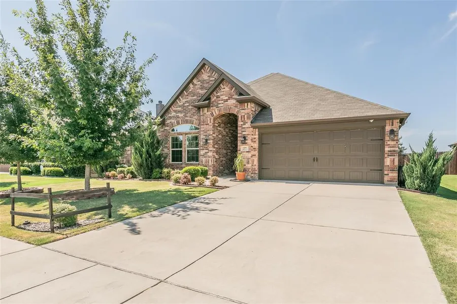 Beautiful & meticulously maintained home! Spacious kitchen with oversized island that opens to the dining & living, perfect for entertaining. A much-desired floor plan offering a split bedroom, open concept layout with 4 bedrooms, one which is currently utilized as a home office with barn doors. Large master bedroom with ensuite bath with separate tub & shower, & walk-in closet. Gorgeous Patio looks out to the ball fields, Backyard backs up to an Elementary School Playground. Great location to access major highways, shopping, Denton, Fort Worth, & Dallas. This house looks like a model home! Walking distance to the community park, playground, & Justin Elementary.