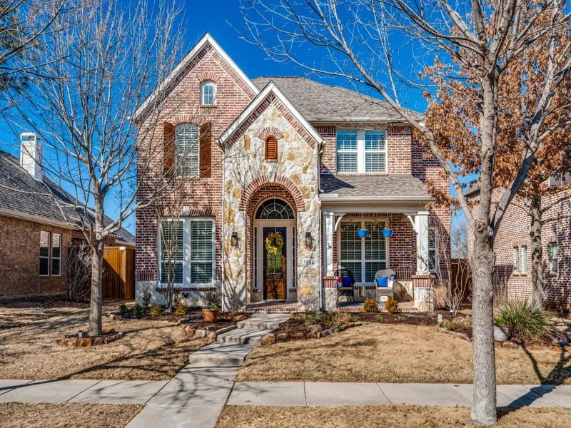 Welcome home to this tastefully updated single owner home in sought-after Frisco ISD! The spacious covered front porch provides a peaceful space to relax & enjoy a book. The interior features an office with French doors; perfect for those who need a quiet place to work from home. Boasting numerous upgrades; including fresh paint, newly refinished hand-scraped hardwood floors, brand new carpet, light fixtures, plantation shutters, updated kitchen appliances & an island perfect for every chef. You will fall in love with the elegant arch treatments, the abundance of natural light & open floor plan which is ideal for family time & entertaining. Step outside to find a beautiful, low-maintenance, spacious patio ideal for cookouts & your morning cup of coffee. This home backs up to a green belt for added privacy & tranquility. 5-star designated Pearson Farms provides friendly neighbors, walking...