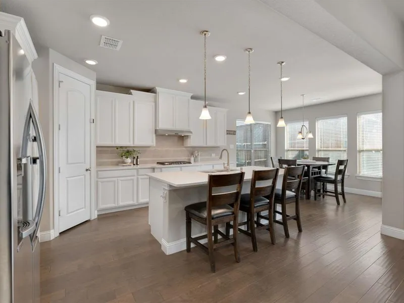 Nestled in the picturesque, master-planned community of Wildridge, this exceptional home is nestled on a cul-de-sac street, and a conveniently located elementary school. Surrounded by the natural beauty of Lake Lewisvilles peaceful peninsula, the neighborhood offers a perfect blend of tranquility and modern convenience. Step inside to vaulted ceilings and elegant wood floors that flow seamlessly through the main living areas. The open-concept showcases a spacious living room with a gas-log fireplace and flows into a gourmet kitchen with quartz countertops, a large island, chic white cabinetry with spice pullouts, and stainless-steel appliances. A bright and airy breakfast area overlooks the backyard. The private study with solid doors provides an ideal home office retreat. The oversized primary suite boasts a tray ceiling and a luxurious ensuite bath featuring dual sinks, quartz countert...