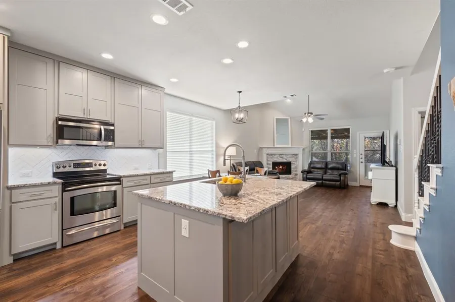 Charming 3-bedroom, 2.5-bath home nestled in Lantanas Magnolia addition! Step inside to find a versatile office space at the front of the home, also perfect as a den or formal living area. The open floorplan seamlessly connects the kitchen, breakfast room, and living room, creating an inviting space ideal for both relaxing and entertaining. The living room features direct access to the backyard, while the kitchen boasts beautiful light-grey cabinetry, granite countertops, stainless steel appliances, and a spacious islandperfect for meal prep or casual dining. The owners retreat overlooks the serene backyard and includes decorative niches, a spa-like ensuite bath with dual sinks, a garden tub, separate shower, and a generous walk-in closet. Upstairs, youll find two additional bedrooms, a full bath with dual sinks, a versatile game room, and a bonus roomideal for a reading nook, craft spac...
