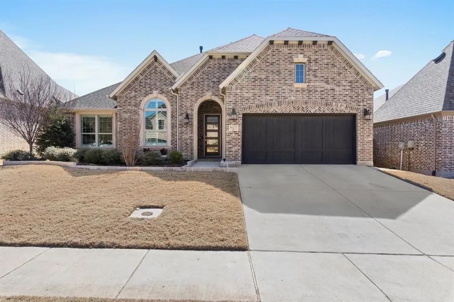 Meticulously maintained 3-bed, 2.5-bath home + office, nestled in sought-after Canyon Falls. FloMo taxes! Thoughtfully designed w. soaring ceilings & plantation shutters throughout, this home exudes elegance & functionality. A spacious office at the front of the home, complemented by built-in study nook, provides versatile work & study space. The open floor plan seamlessly connects the living, dining, & kitchen areas, while plentiful windows fill the space w. natural light. The chefs kitchen is a showstopper, boasting a stunning Affinity tile bksplsh, glass-front upper cabs, quartz cntertops, lrg island, 5-burner gas cooktop w. vented hood, SS apps, pull-out spice racks, & pantry w. custom Elfa shelving. A charming bay window in the brkfst nook overlooks the lush bkyrd. The inviting living room features cozy fireplace & built-in surround sound, while the dining area impresses w. decorative ceiling & built-in dry bar w. wine fridge. The owners retreat is a peaceful sanctuary, featuring a bay window & spa-like ensuite bath w. freestanding soaking tub, sep shower with raincan shower head, spacious walk-in closet w. custom Elfa shelving. Utility room dbls as mudroom w. plentiful storage & handy bench & leads to the epoxy-floored garage w. solid wood, insulated door. Smart home package includes smart oven, garage door opener, Ecobee t-stat, Ring doorbell, & smart locks for modern convenience. Step outside to an entertainers paradise - oversized covered patio w. built-in grill, smoker platform, mounted TV, & large grassy yard offer the perfect place to play or unwind. Canyon Falls offers resort-style amenities, including pools, parks, dog park, fishing pond, fitness cntr, miles of scenic trails. HOA fees cover lawn maint. + Frontier internet & TV. This home is ideally located 10 minutes from shopping, dining, & entertainment, & only 20 miles from DFW Airport! The perfect blend of style, function, & convenience - dont miss your chance to call this one home!