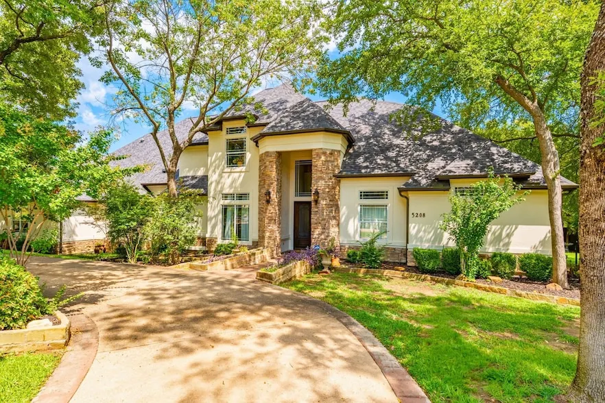 This refined Flower Mound residence sits on a sprawling, lush lot and is filled with refined details and functional spaces. Inside, you ll find extraordinary architecture plus three fireplaces, and soaring ceilings throughout. No details were left behind in the recently remodeled state-of-the-art kitchen boasting luxurious granite countertops and backsplash, stone accents, built-in fridge, wine cooler, and coffee espresso machine. The downstairs primary retreat offers a fireplace, wall of windows with lush views, patio access, a hidden cedar closet safe room, and a spa-like bath with dual vanities and a separate tub. This incredible floorplan boasts a second downstairs bedroom that can be used as a flex space or home gym, an office, formal dining, and den plus spacious family room. Upstairs offers two additional bedrooms with en-suite baths and a massive game room. Step outside and immer...