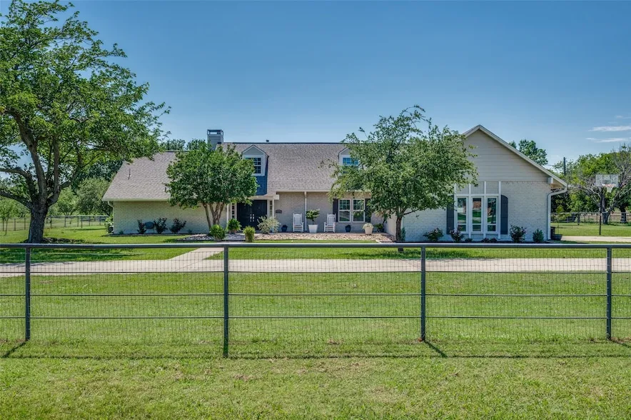 Country living with city conveniences! Located in a quiet, tucked away neighborhood with easy access to Razor Ranch & just north of the I-35E & I-35W split! As you enter you'll see the huge great room with beamed ceiling and a stone fireplace. The kitchen offers quartz countertops, stainless steel appliances, an island & a bay window breakfast area. The dining room has easy access to the kitchen & can accommodate a large table. The primary bedroom is split from the others for privacy. The primary bathroom has been remodeled with quartz vanities & large walk in shower. Two very large secondary bedrooms are downstairs. Upstairs offers flexible space for any lifestyle. Use it was a MIL suite with a bedroom, bath & living area or use it as an office, a game room, hobby room or workout space. Retreat to the large covered patio & watch the sunset after a long day. Outbuilding can be used as a livestock barn or a workshop. Recent improvements: windows, HVACs 2016 & 2028, primary bath remodel, LVP flooring added in all bedrooms & upstairs which includes heavy duty floor decking, pipe fencing added to incorporate full perimeter fencing, two automatic driveway gates installed, landscaping with stone borders & insulated garage door.