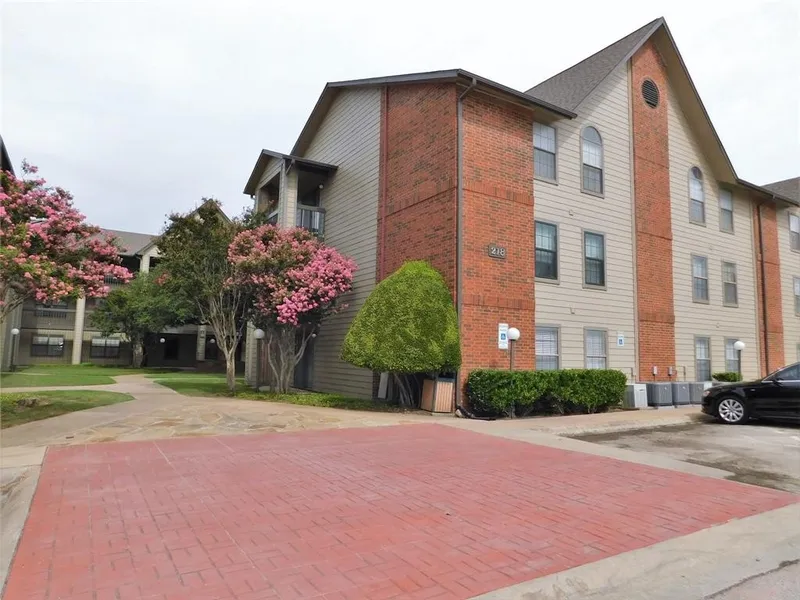Two bedroom, two full bath condo on the top floor of Eagles Landing! No upstairs neighbors! Luxury vinyl plank flooring throughout the living areas with carpet in both bedrooms. Kitchen features granite counters. Refrigerator and washer & dryer included. Access to the community pool. Walk to class!