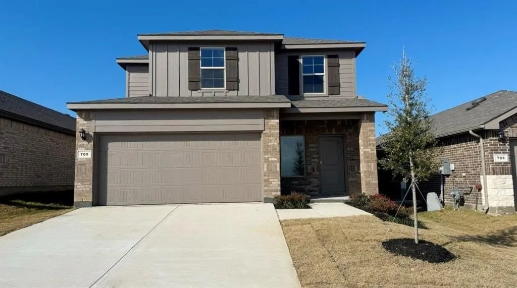 Available for a Quick Move-in!! D. R. Horton America's Builder since 2002 is excited to serve as your new home builder in Monarch at the Meadows, a fabulous unique master planned community in Denton and Krum ISD! The Florence plan elevation-A, is Complete and Move-In Ready! The Florence is a two-story home featuring 3 bedrooms, 2.5 baths, and 2 car-garage. The entry leads to a powder room before flowing through an open concept floor plan with the kitchen opening to the dining and family rooms. The gourmet kitchen includes granite counter tops and stainless steel appliances with gas cooking range. An oversize utility room is located off the kitchen. The downstairs main bedroom features an attractive en-suite with a grand walk-in closet and plenty of storage space. The second story features a versatile upstairs game room, secondary bedrooms, and second full bathroom. The rear covered patio located off the family room is built standard. Additional features include: tankless water heater; ceramic tile flooring in entry, halls and all wet areas; plush carpeting in living room and all bedrooms; cultured marble bathroom countertops; and full yard sod, landscaping and irrigation. This home includes the HOME IS CONNECTED base package. Using one central hub that talks to all the devices in your home, you can control the lights, thermostat and locks, all from your cellular device. Situated conveniently near Highway 35 and Highway 380, Monarch at the Meadows provides easy access to key roads, making it ideal for commuting and exploring the surrounding areas.