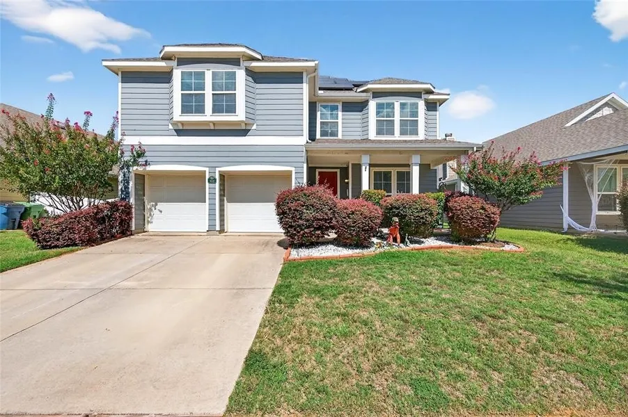 Welcome to 9201 Blackstone Drive, located in the Harbor Village neighborhood of Providence Village and zoned for Aubrey ISD. This 3-bedroom, 3.5-bathroom home offers a thoughtful layout with plenty of space for everyday living. The main floor features a large open-concept kitchen and living room, anchored by a generous island that provides room for meal prep, casual dining, or gathering with family and friends. At the front of the home, the dining room could also serve as a home office or flex space, giving you options to fit your lifestyle. Upstairs, a second living area adds additional versatility for a media room, play space, or lounge. The spacious primary suite includes a private en-suite bath, while the two secondary bedrooms are also generously sized with access to full bathrooms. The laundry room is conveniently located on the second floor near the bedrooms, making day-to-day routines easier. Step outside to a backyard designed for relaxing or entertaining. A pergola with an extended patio creates a comfortable spot for grilling or unwinding in the evenings, and a storage building provides room for tools, lawn equipment, or seasonal items. The property also comes equipped with solar panels that will transfer free and clear to the new owners, offering long-term savings and efficiency. Living in Harbor Village means enjoying a lifestyle filled with amenities. Residents have access to a clubhouse, fitness facilities, and multiple pools—including a waterpark-style pool that’s a hit in the summer. There are also playgrounds, walking trails, and community events that make it easy to connect with neighbors. With its convenient location, you’ll also have quick access to Lake Lewisville, area shopping, and dining. If you’re looking for a home with functional space, outdoor enjoyment, and community perks, 9201 Blackstone Drive is a solid choice in Providence Village.