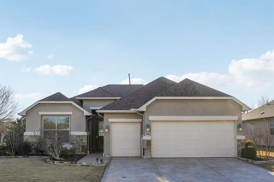 An oversized garage offers space for two cars plus a golf cart and features a four-foot extension, epoxy floors, an attic lift, and abundant storage. Stamped concrete driveway with convenient access to Hwy 35.