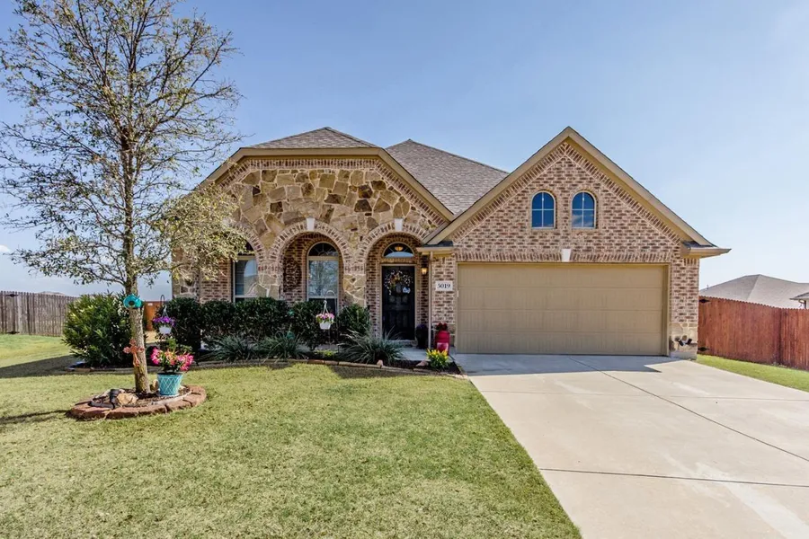 A stunning home w. beautiful stone work & extended, spacious front porch. Hand scraped wood floors, & natural light greet you in an entry way that opens to a gorgeous kitchen w. dark wood cabinetry, granite counter tops throughout, stainless steel appliances & over sized island w. detailed stone work & a bar top for additional seating. The family area offers vaulted ceilings, an ornate stone fireplace & large windows. The spacious master suite spares no detail w. vaulted ceilings, a soaking tub w. chandelier, & granite counters. 2 bedrooms offer additional space & the study w. a closet can be used as bedroom or bonus room. The large backyard offers a covered back porch. This immaculate home is a must see!
