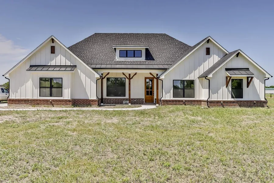 The office has a French doors off of foyer, and closet storage. The exterior has integrated feature spot-lighting, exposed wood beams and corbels, accent metal roofing over windows, and an inviting curved walkway.