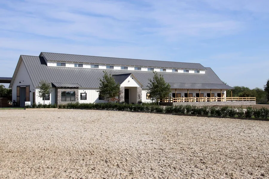 Pebble Bourn Farm is an elegant 11.925 acre gated equestrian estate designed with the serious equine professional in mind. Mirrored 80x200 indoor arena is complete with 5 tongue and groove kickwalls on 2 sides and automatic sprinkler system. FEI regulation 20x60m outdoor dressage arena. Both arenas are designed to ensure equine safety and include Premier Equestrian Arena Aid all-weather performance footing additive mixed with high quality white sand. Wood framed 16 stall barn has rubber pave-stone aisle, LED lighting, feed rm. with sink/prep area, tack rm. with individual lockers and washer/dryer connection, 2-bay wash rack with hot/cold water, office, and 1 BR 1 bath apt. acre to 2 acre individual turn-out paddocks with Centaur FlexFence and electrified top rail. Total of 16 Classic Equine 12'x12' stalls each with hoofgrid drainage underlay, 2 stalls have swinging partitions for foaling/mare motel, 12 stalls have 12x16 runs. The 34 roofline and hints of East Coast design cues makes for a truly unique setting! Currently being used as a dressage training facility this is the perfect farm for even the most discerning equine professional.
