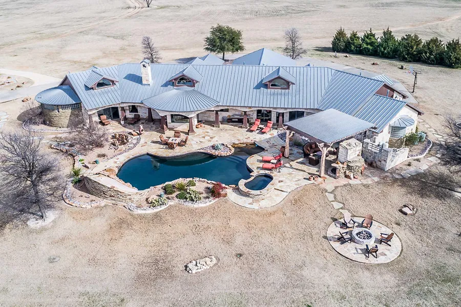 This unparalleled acreage property features a magnificent custom home with a hill-country ambiance blending an elegant and rustic styling that sits beautifully in a spacious 42.7-acre setting.