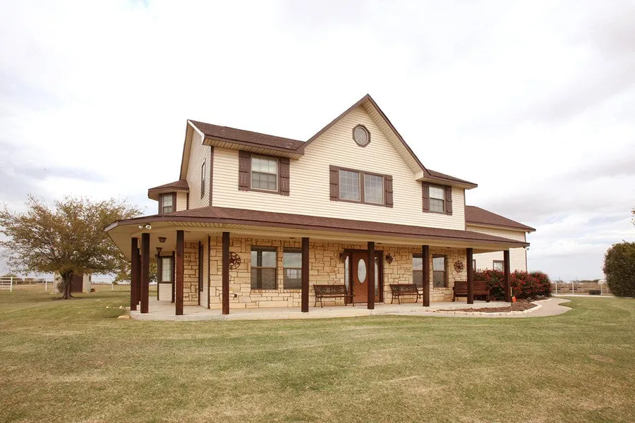 Welcome to 3850 Sky View Lane, located in one of Denton County's popular horse cities, Krum. This fabulous 2 story home with a wrap-around porch has a terrific drive up appeal and sits on a sprawling 10 acres. Inside you will find 4 large bedrooms, 2.5 bathrooms 2 dining areas and a game room. A partial list of updates & amenities includes; warm designer colors, plush carpet floors, ceramic tile, bay windows, floor-to-ceiling stone fireplace, gourmet kitchen with breakfast bar, stainless appliances, custom cabinets, an open breakfast area, spacious master retreat with his & her sinks, make up station, jetted tub, walk-in shower & huge walk-in closet. Outside your horses will love the 3 huge pastures & you'll love the main barn that measures 45' by 36' and there is another barn with an overhang that is perfect for a horse trailer or tractor. Bring your horses over and feel right at ...