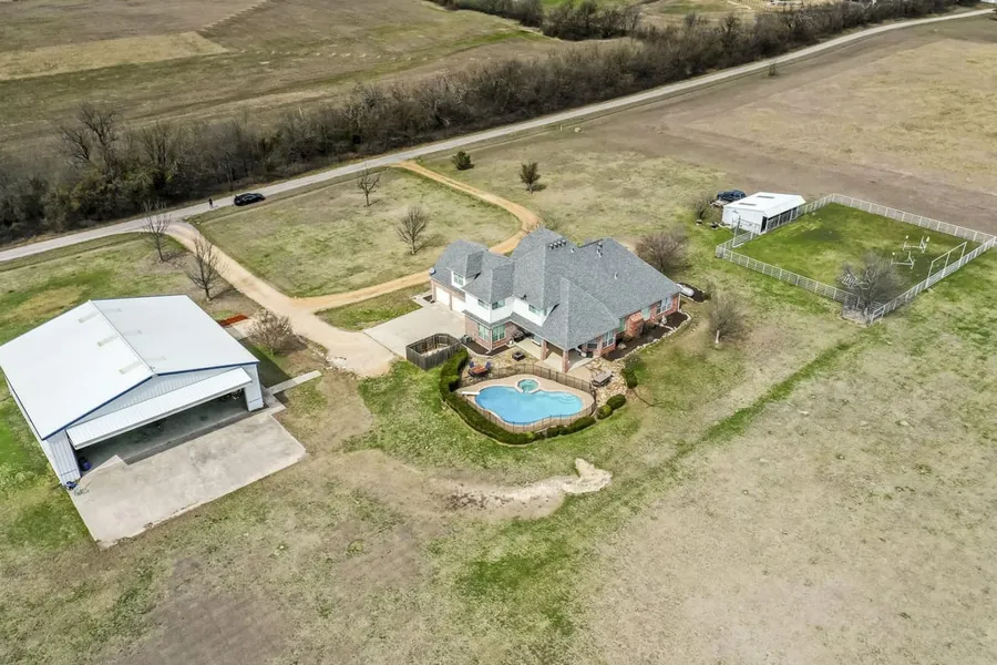 4062 sq. ft. custom home resting on 5 acres in the Bar V K Air Ranch Estates! This 4 bedroom, 3 bathrooms, 3 car garage home has two living areas, gunite pool, 60x60 Morton hanger with 14x50 Bi-Fold door, and a 2 stall shed. There is a 60' wide grass taxiway on east boundary of property, a 3000' NS runway, riding trails, and a private lake. You don't want to miss this awesome airport property!