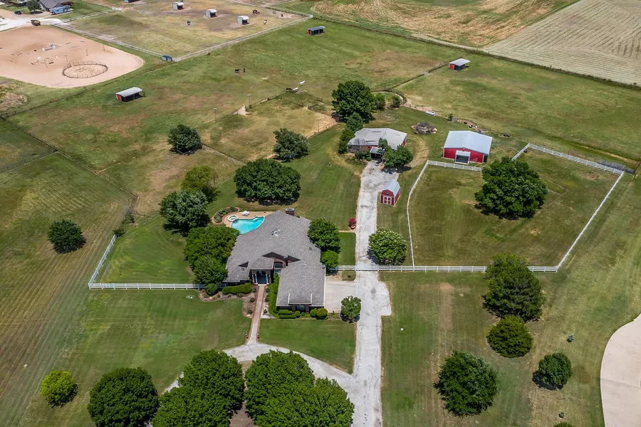 Located in the desirable acreage neighborhood of Running Springs in Pilot Point, 10180 Copeland Place offers an attractive custom home, pool, and horse facilities on just under 8 acres.