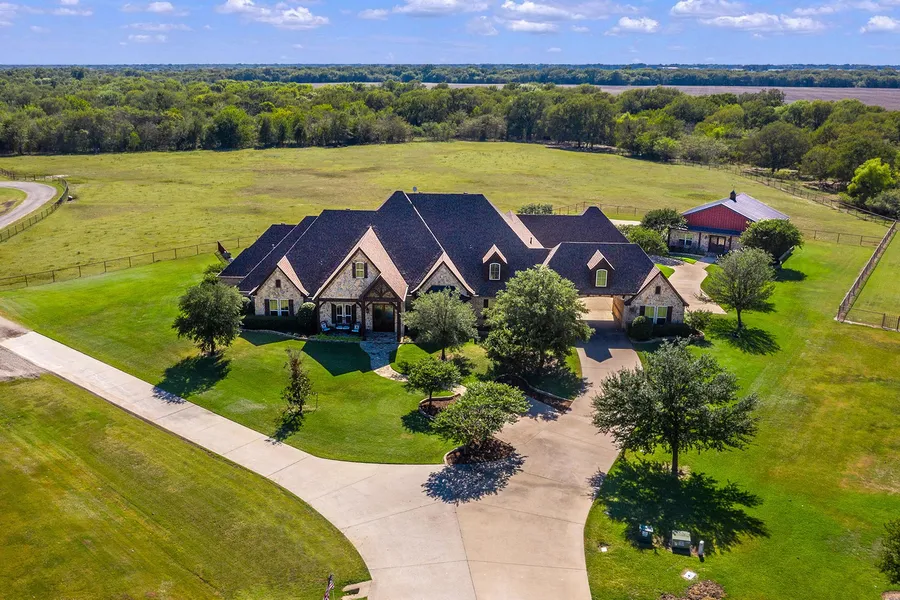 Located in one of Pilot Point's most desirable neighborhoods, 2230 Twin Creeks Court offers a magnificent home, pool, pool house, and a shop/storage building on just under 12 acres.