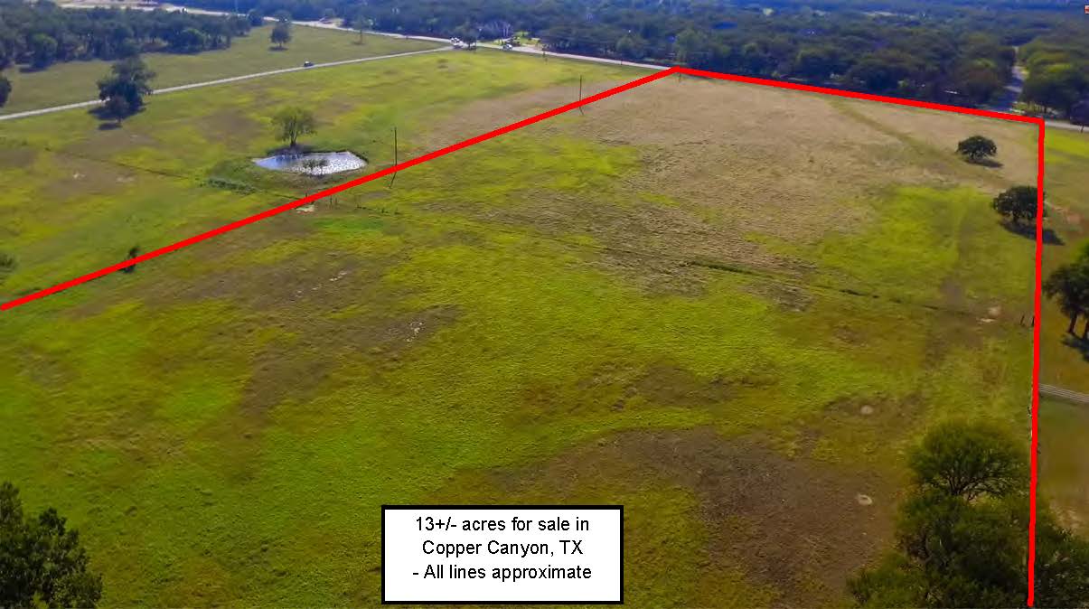 IN CONTRACT-Extremely rare opportunity in the heart of Copper Canyon. Recently re-zoned R1 Residential, this 13 acres (more or less) has tons of potential and is one of only a few large tracts available in Copper Canyon. Gorgeous property with plenty of building sites perfect for a country estate. Property also boasts tons of development potential and is conveniently located to the Shops in Highland Village and Lantana. Investors, do not miss out on this unique offering! This is one of the last completely untouched parcels in the middle of one of the most desirable areas of DFW. Tracts this large in this area do not come around often, so contact us before it's gone.