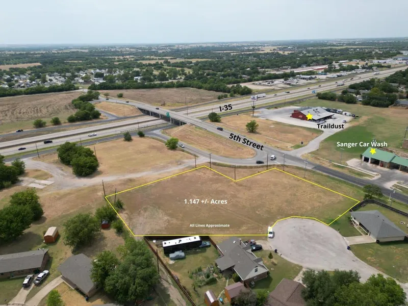 Location, Location! 1.1474 + - Acres with visibility to 5th Street. Directly across from the Sanger Carwash and Traildust Steakhouse. City utilities available, Zoned B-1 Business district. Per City of Sanger, the B-1 Business District is intended for office facilities, neighborhood shopping facilities and retail and commercial facilities of a service character. The B-1 District is established to accommodate the daily and frequent needs of the community. Get in on the ground floor before the I-35 expansion project. Buyer to Verify.