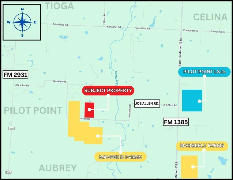 Escape the hustle & bustle of city life & discover a world of tranquility on this expansive 16.72-acre property nestled in the peaceful countryside of Pilot Point, TX. Located just 9 miles north of Hwy 380 & conveniently west of FM 1385 on a paved road with minimal traffic, this property offers a secluded haven for nature enthusiasts & those seeking a tranquil escape, while also presenting exciting opportunities for event hosting & a truly exceptional investment. With 16.72 unrestricted acres, enjoy the freedom & flexibility to customize the land to your heart's desire, whether you envision a sprawling home, a horse ranch, a weekend getaway, a venue for special events, or simply a place to reconnect with nature. The property boasts a mix of wooded areas, providing shade & privacy, as well as open pastures, perfect for grazing animals or enjoying outdoor activities. A picturesque pond...