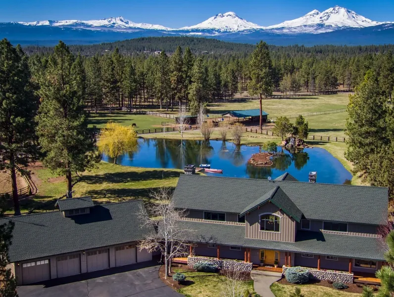 Elite boarding & breeding facility on 33 acres with breathtaking Cascade Mountain views in a secluded setting. Equestrian facility with 15.26 acres of water rights, 2 state-of-the-art barns, ranch-hand quarters, 21 stalls, 2 wash stalls, vet room, office/trophy room, kitchen, half-bath, feed & tack room. Verdant riding fields, outdoor arena, round pen, grass paddocks with aisleways, hotwalker, breeding equipment, hay barn & more. View the mountains, pastures & pond from the 5-bedroom, 3.5- bath, 5,485-sf home. Stunning architectural detail resonates throughout. Great room with 26ft cathedral ceiling, gourmet kitchen & formal dining with 555+-bottle enclosed glass wine room. Master on the main level plus private office. Outdoor living area with fireplace, TV, heaters & full BBQ kitchen. 4-car garage, RV parking & so much more! This estate will make you feel like you are a world away, but you are mere minutes to downtown Sisters, with quick access to Bend & the Redmond Municipal Airport.