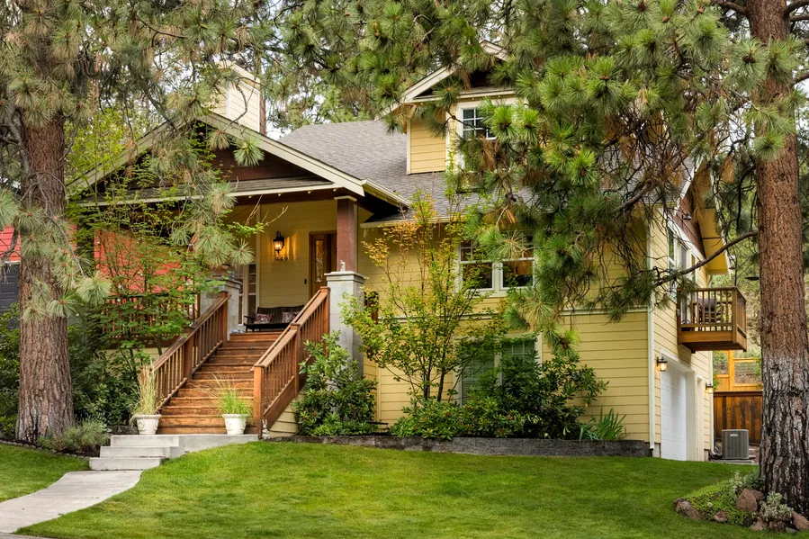 Backing to Overturf Butte Trail & just one house from the Park, this gorgeous home offers privacy while placing you in the heart of Bend's Westside living! The artful residential design optimizes entertaining spaces while maintaining robust private areas for work, study & repose. A storybook front porch welcomes you to a classy + well cared-for interior. Remodeled in 2016/2017, this colorful home is highlighted by vaulted ceilings + thoughtful details. From the back of the home, enjoy access to the lush, beautifully landscaped, fully fenced yard w/ coveted privacy + a top-of-the-line therapeutic spa. Main lvl has spacious living room, dining, eat-in kitchen w/ island, office/music room + half bath. Current owners developed the flex room over the garage; bdrm, art studio, office, ZoomRoom, gym, guest space w/ Juliette balcony + Skylights. Upstairs is 3 bdrms, 2 baths; primary w/ dbl vanity, designer finishes, custom walk-in closet. New furnace, A/C, tankless hot water heater + roof.