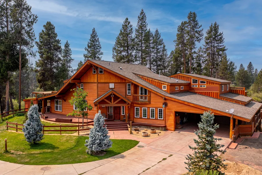 Live the Central Oregon dream! This amazing custom post & beam log accent home over 5200 sf has over 8 acres including 1/4 mile river frontage and room for all your toys, friends, family and fun. Maintained trails throughout the property provide outdoor recreation in all seasons. There's room for an RV or boat, (or both!), snowmobiles, kayaks, quads and more. Jaw dropping views of Mt. Bachelor and the river from the living room, Broken Top views from the primary bedroom and 3rd floor loft make you feel you're surrounded by the best in Central Oregon! This home features radiant floors, vaulted beamed ceilings, entertainer's kitchen and workshops for any hobby. Primary bedroom has a workout room/retreat plus soaking tub and lovely beamed ceilings. Lower level of home is an income producing short term rental, but could be perfect for guest quarters, mother-in-law suite, etc. Come see this r...