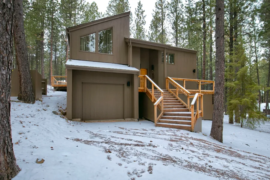 Best buy in BBR! Located in the prestigious Glaze Meadow Section of The Ranch on .64 acres, this beautiful split level home features views of the Glaze Meadow Golf Course and is in a pristine forest setting. The main level has an open concept, with a recently remodeled kitchen open to the dining and great room with wood stove to keep you warm and cozy in the winter. Two primary suites on main floor as well as a wraparound deck to enjoy the views of the course and our starry nights. The lower level features two additional bedrooms, full bathroom, laundry and family/bonus room. There is another deck on this level as well an attached single car garage, central heating/air conditioning and the home is being sold turn-key and fully furnished.