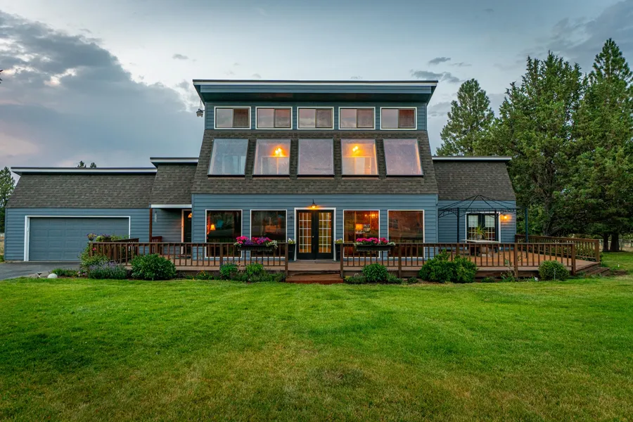 Enjoy the charm of country living in this turnkey equestrian property with curb appeal to spare. Here, a lovely two-story home delivers thoughtfully designed spaces and practical additions alongside cozy ambiance. Custom features include the passive solar, large front deck, enclosed front porch, live-edge wood bar countertop, spacious mudroom and private back deck with built-in hot tub. The deluxe, insulated, and fully-powered barn/shop features five stalls, a 15' roll up door, a spacious second floor loft, hay storage and convenient tack space. Also perfect for woodworking, mechanics, or simply storing your recreational toys, this space provides the versatility to live without constraint. On the property beyond, find two fully fenced pastures, four loafing sheds and both in-ground and above-ground irrigation for livestock and gardens alike. Only a short drive away from the conveniences of Bend, this property remains a serene oasis within a charming niche of picturesque Central Oregon