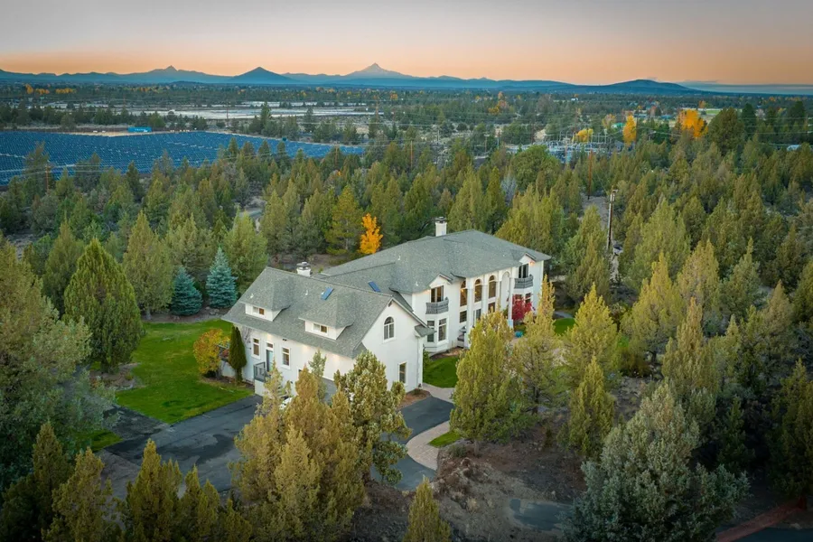 Welcome to luxury living at its finest. With panoramic Cascade Mountain views and seclusion among the trees, this estate is truly unique. Located on over 2.5 acres, it's conveniently near shopping, breweries, trails, the Deschutes River, and Mt. Bachelor ski resortideal for high desert adventures. Enjoy beautiful indoor and outdoor spaces, and an attached Guest quarters with dedicated access and outdoor patios. Perfect for year-round entertainment with a large yard, gardens, game and workout rooms, a well-appointed chef's kitchen, and thoughtful details throughout. The spacious main-level primary suite complements a refined two-story home office with a spiral staircase leading to an open library and study. This custom-built, one-owner home offers the epitome of Cascade Mountain living in Bend. Filled with natural light and privacy, this meticulously updated home is ready for its new owne...