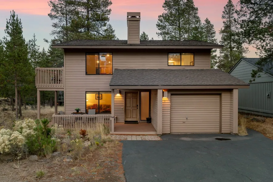 Discover this Sunriver gem, on the market for the first time! Thoughtfully chosen by its original owners, this home on a corner lot offers a perfect blend of privacy & convenience. Surrounded by open common space on two sides, the home is enveloped by nature yet boasts a central location near Fort Rock Park, SHARC, the Village, & quick access to Hwy 97 for a short drive to Bend. Inside, the sunlit home features a welcoming great room floor plan w/ a cozy wood-burning fireplace that creates the perfect ambiance for chilly evenings. With 3 bedrooms & 2 baths, plus a bonus family room downstairs, there's ample space to unwind. Recent upgrades include quartz countertops, cabinets in the kitchen, stainless steel appliances, Luxury Vinyl Plank flooring, carpet, interior paint, hot water heater, & A/C for year-round comfort. Step outside to a spacious wrap-around deck ideal for gatherings, w/ a lower deck for a relaxing soak in the hot tub. Includes a single-car garage.