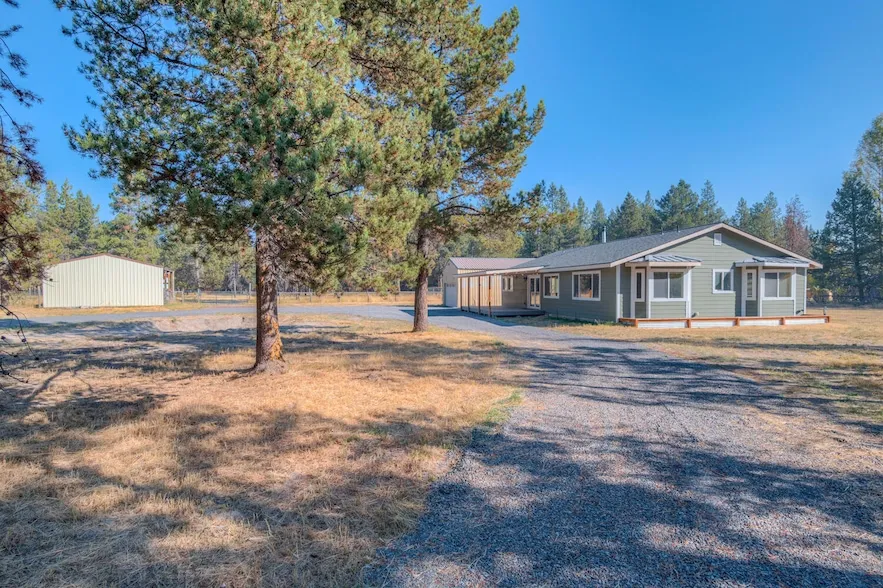 One-level home on 2.79 acres! This updated 2-bedroom, 2-bathroom home features an additional office/den. The open floor plan is flooded with natural light, creating a warm and inviting atmosphere. Recent upgrades include central heat and AC, heat pump, a newer roof, a full kitchen remodel, updated electrical panel, new flooring, doors, siding, and windows everything you need for modern comfort. The property is fully fenced, ideal for privacy and security, and includes a large, 3-sided loafing shed, perfect for horses or other animals. A spacious shop with 220V power is ready for your projects. Located near the Little Deschutes River, you'll enjoy abundant wildlife and peaceful surroundings. Just a short drive to Sunriver, Mt. Bachelor, and the lakes.