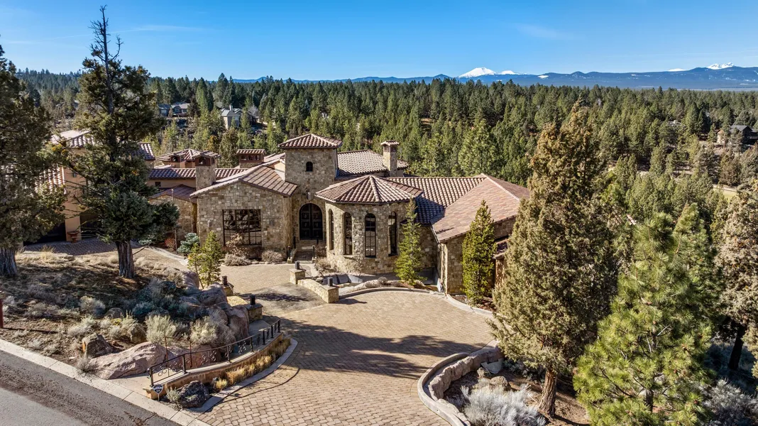 Step inside this remarkable home and be transported to Europe, where every corner tells a story of worldwide inspiration and craftsmanship from another era. With its meticulously curated design, this home offers an unparalleled sense of history and artistry. Perched above Awbrey Glen Golf Course, itboasts sweeping views of the Cascade Mountain Range. Inside you'll discover an expansive gourmet kitchen, complete with a butler's pantry, formal dining room, wine cellar, an executive office/library, game room with a pool table, shuffle board, game table and a movie theater. The heated tile balcony welcomes youwith ample room for entertaining and savoring the sunsets. Each bedroom has access to the two story balcony, offering elevated views. This exquisite residence is a masterpiece of design and craftsmanship. A home that must be experienced in person to fully appreciate its beauty and arti...