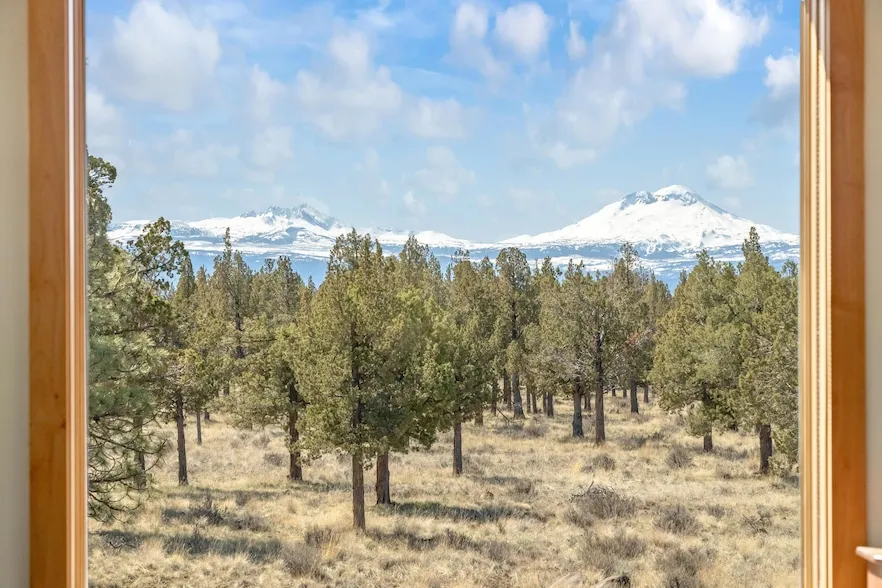 Highly private and secluded 40 acres with Cascade Mountain views, Warm Springs views and canyon views with potential for even more views with some tree removal. Upper living quarters features: High vaulted ceilings; High-end wood frame windows in the apartment; Three Sisters mountain views from living room and other places; Large kitchen for overall home size; Brazilian Cherry hardwood flooring; Jotul wood burning stove; Solid wood cabinets. Exterior features: Upper level deck with mountain views; Oversized 1344 sf three car garage; Paved road and paved driveway with lots of good parking at the property; Property served by a 1500 gallon septic tank (prepared for future home build); 400 amp electric service; 40-year composite roof installed in 2015; Excellent wildfire mitigation (cement siding / extensive tree limbing / no close proximity trees to structures). Property can be fully enjoyed as-is or can be a landing place while building a dream home.