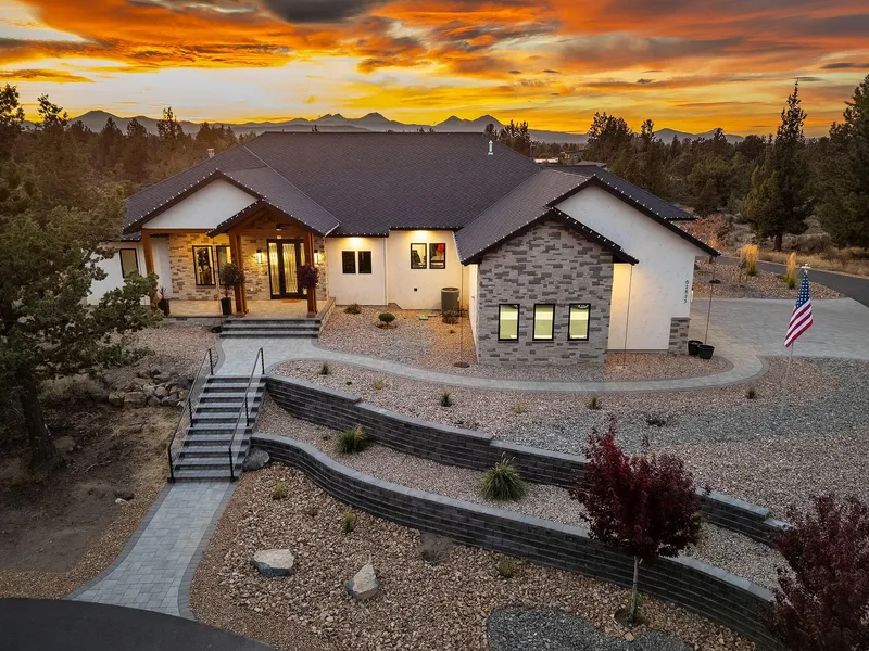 Welcome to your exquisite oasis in Bend, Oregon! This stunning single-story residence, built in 2021 and barely lived in, offers 3,727 sqft of luxurious living on a sprawling 3.6-acre estate, just moments from the airport. Step inside to discover a sophisticated open floor plan, highlighted by a magnificent primary suite that boasts a spa-like bath with a walk-in shower, a soaking tub, and an expansive walk-in closet complete with a separate washer and dryer. Three additional ensuite bedrooms provide privacy and comfort for family and guests, while an elegant office and a spacious bonus room enhance your living experience. Indulge your inner connoisseur in the hidden wine room, or entertain effortlessly with the secret butler's pantry featuring a full-sized refrigerator. The three-car garage and a remarkable 3,000 sqft shop offer ample space for all your pursuits. This home embodies the ...