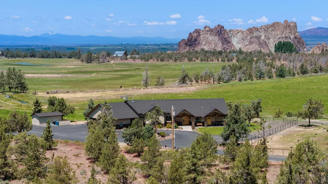 Here is a One of a Kind Estate. This beautiful custom home was designed for gracious living and exclusive entertaining. Incredible views of Smith Rock and first hand views of your cattle grazing in the field that is irrigated with a Pivot. This 48+ acre property has a gated entry, 2800 sq ft shop with bathroom, a 2160 sq ft hay barn, squeeze chute, corrals and a 4 post vehicle hoist. The hay field produces approx. 100 ton per year. The expansive home has an outdoor kitchen for the ultimate in BBQ festivities. Inside this incredible home you will find floor to ceiling windows with automatic shades and beautiful Hickory wood floors. The primary suite has it's own inside Hot tub room complete with Sauna. The kitchen is a Chef's delight with propane range that has a pot filler, two dishwashers, two microwaves, Viking refrigerator, beautiful Hickory cabinets and Leathered Granite countertops. The over-sized two car garage is heated and has built in cabinets and hot water tap.