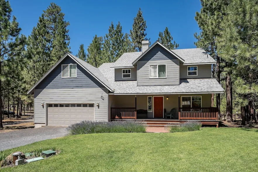 Tucked away on a wooded 1-acre corner lot, this charming 2-story home offers privacy, space, and versatility. With 3 bedrooms upstairs, 3 full baths, and a main-level den, there's room for everyone. Hardwood floors, a cozy wood-burning fireplace, and abundant natural light create a warm, welcoming feel. Enjoy outdoor living on the covered decks at the front and back of the home. The greenhouse and garden-ready space invite your green thumb. Located in a quiet, horse friendly neighborhood with access to community trails, and a park-this is a true retreat with room to grow. Live in Sisters, Oregon with easy access to ski, hike, bike, ride, and abundant community events year around!
