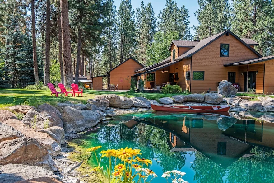 Pine forested private retreat on 5.37 acres with multiple living areas. Located just north of town in Junipine Acres, this custom Pacific Northwest-style property is move-in-ready with most furnishings negotiable. The first living space includes a 2,945 SF, 3 BR, 2.5 BA main home with a master bedroom on the main floor, plus the 1,965 SF Guest Home with 4 BR, 2 BA. The 3,000 SF shop with 1 2 BA is accessible from both homes. With the main house, guest quarters, casita, multiple garages, supreme shop, swimming pond, beautiful landscaping, lawn mowing robots, and proximity to Sisters and schools, this is the perfect family living or vacation space. Fully fenced with gated access, fruit trees, mature native trees and paved driveway. Junipine Acres has community water plus a private, gated community park with a picnic area and access to Whychus Creek. Ask for the link to this property we...