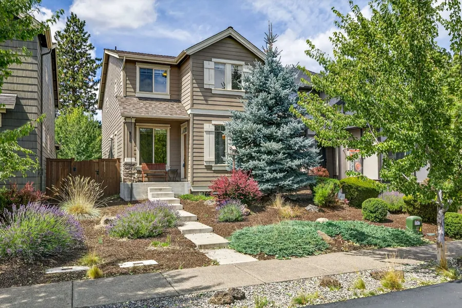 Ideally situated in the sought-after Bridges community, this meticulously maintained two-story home offers 3 bedrooms, 2.5 baths, and a thoughtfully designed open floor plan. The inviting great room features a striking stacked-rock gas fireplace, while the upgraded kitchen boasts stainless steel appliances, quartz countertops, backsplash, breakfast bar, and warm alder cabinetry. Upstairs, a versatile loft provides a perfect space for a playroom, home office, or cozy second lounge. The private side yard is ideal for outdoor dining and entertaining year-round. As a resident of The Bridges, you'll enjoy resort-style amenities including a pool, hot tub, playground, BBQ area, fitness center, indoor basketball/volleyball court, game room, and a clubhouse with a full kitchen, bar, and lounge for hosting events. Located just 10 minutes from downtown Bend and mere steps from the new 37-acre Alpenglow Park.